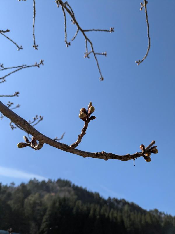遅咲きの八重桜が芽吹いてきた。満開はGWくらいかな。