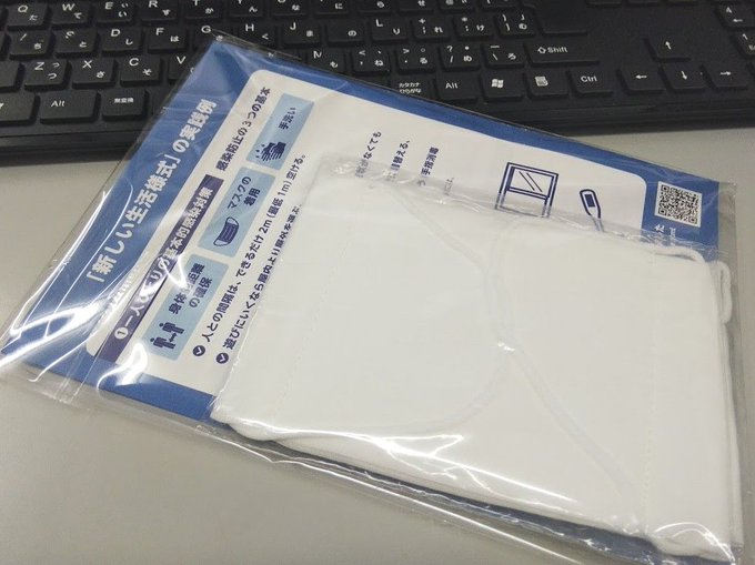 アベノマスク、会社と家に届きました。特に汚れもゴミも見受けられません。記念に取っておこうかと思いますが、もし必要な方がみえましたら、お譲りしますので御一報ください。見た感じコレを眼帯だと感じる人は、余程お顔がふくよかなのでしょう。だんかんバカヤロ。