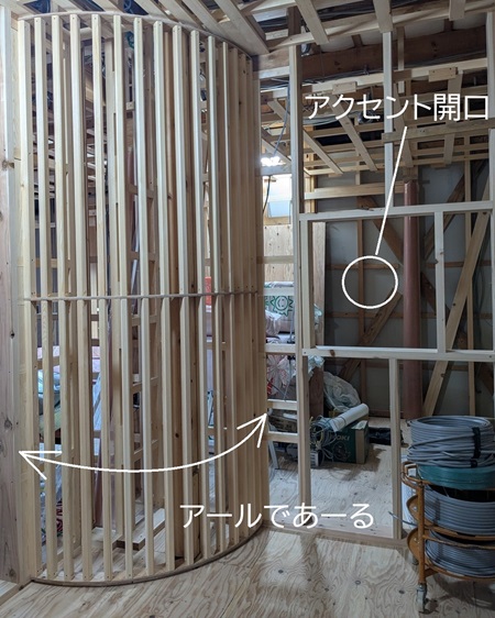 こちらは柱を囲むようにRの壁を作って空間のアクセントに。