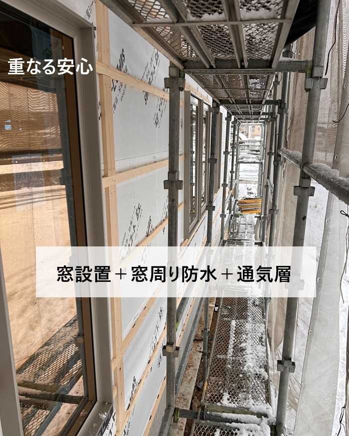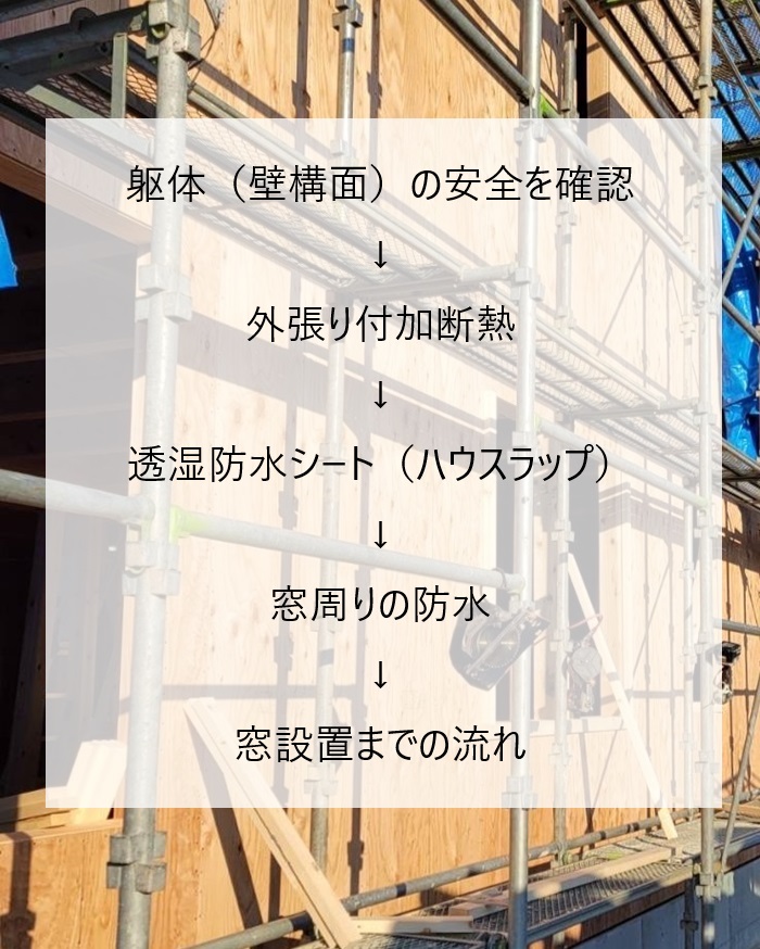 木材等使わず全面に貼る事で熱橋を無くす事になります。