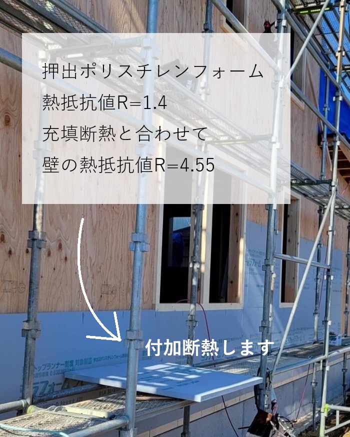 充填断熱と合わせて 壁の熱抵抗値R=4.55に。