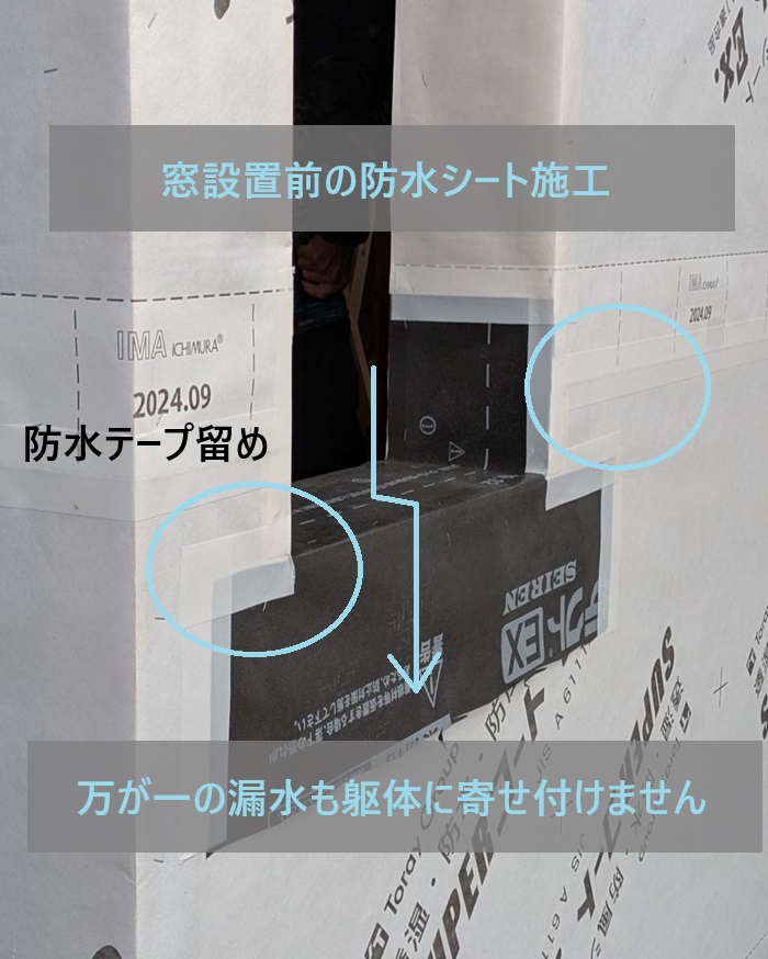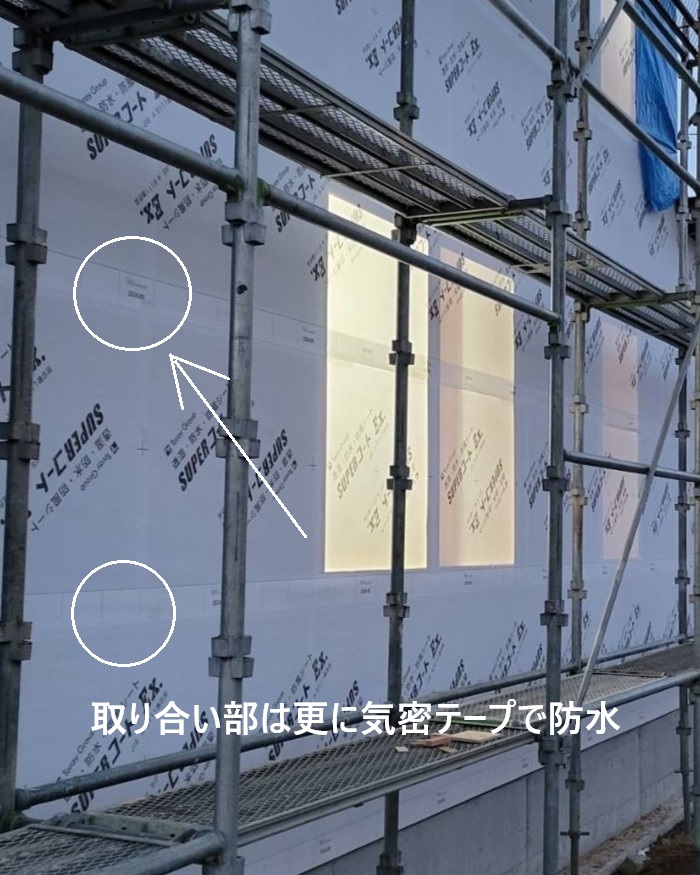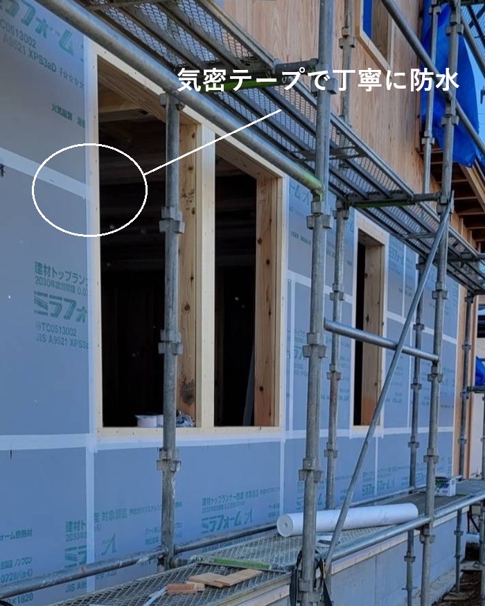 硬質ボードの繋ぎ手部分は気密テープで防水処理を。