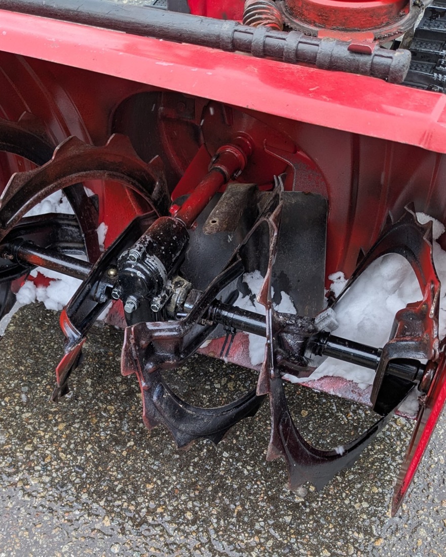 本日より仕事始め。にも関わらず、除雪機オーガにスコップ巻き込むの巻・・誰だ雪の中にスコップ仕込んだヤツ(-_-;)