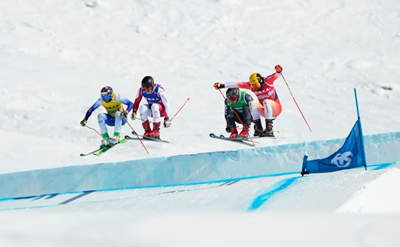 スキークロスとは同じコースに4人が同時スタートし、ジャンプやバンク、ウェーブなどの障害物が設置されたコースを滑走して着順を競う種目です。
