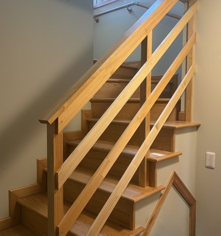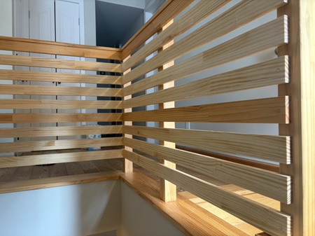 階段手摺シンプルで良いんだけど、ちょっと荒いかなと。
