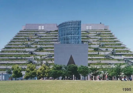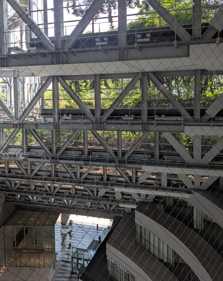 これ森では無くアクロス福岡と言う複合施設で「建物に地域の生態系を植樹してある」んです。