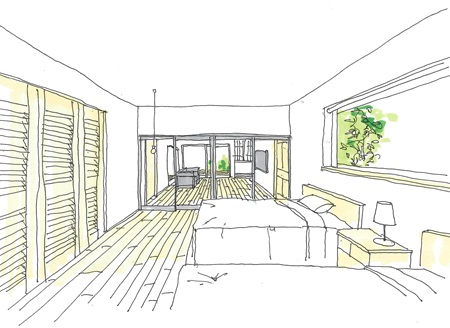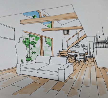 御夫婦の寝室を2階から下ろし、お二人用のリビングに変更してお庭と繋がるなんてのも良い手かと。