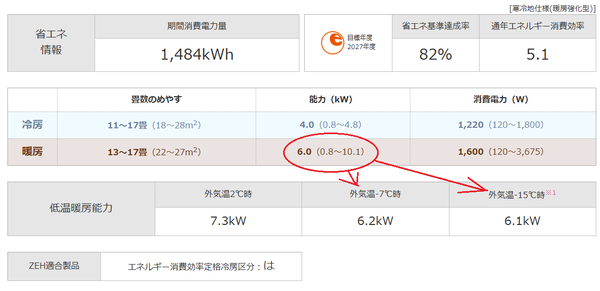 寒冷地エアコンでも 外気温でこれくらい能力に差が出る。