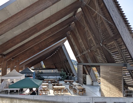 大きな屋根が掛かってて、その下にマルシェやお店が並んでいます。
