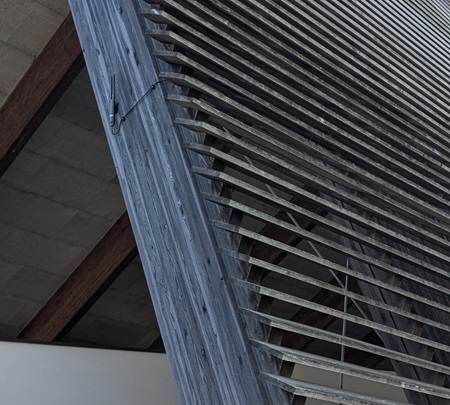 無垢板がルーバー状に屋根の代わりをしています(爆