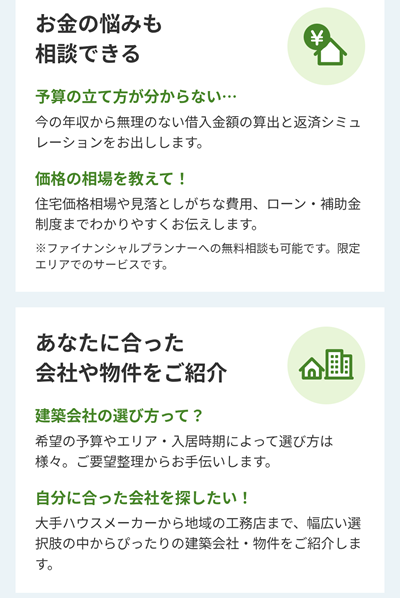 確かに第三者が相談に乗ってくれて、ハウスメーカーの紹介までしてくれるのは、楽ちんで安心な気がします。