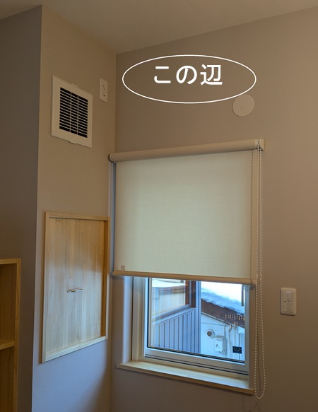 まず、室内で一番高い所(ロフトの場合もアリ)にエアコン設置スペースを設けましょうか。この画像で言うとこの辺。