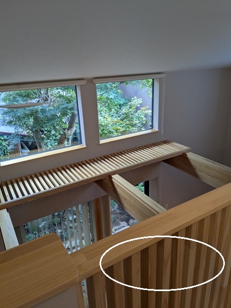 手摺壁で冷気が溜まらない様、一部は格子手すりに。