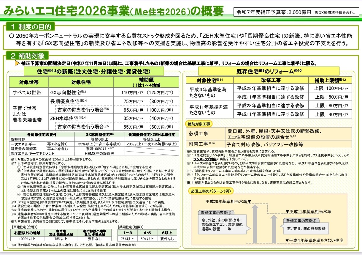 昨夜 来年度の省エネ住宅補助金が発表されました(詳細クリック可)