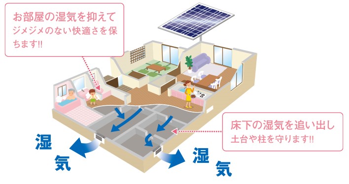 ソーラーで動くのなんかもあるけど、床下換気扇とは概要的にこんな感じ。