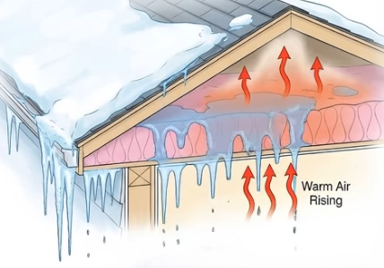 室内からの温かい空気が屋根を温め、屋根に積もった雪を溶かします。