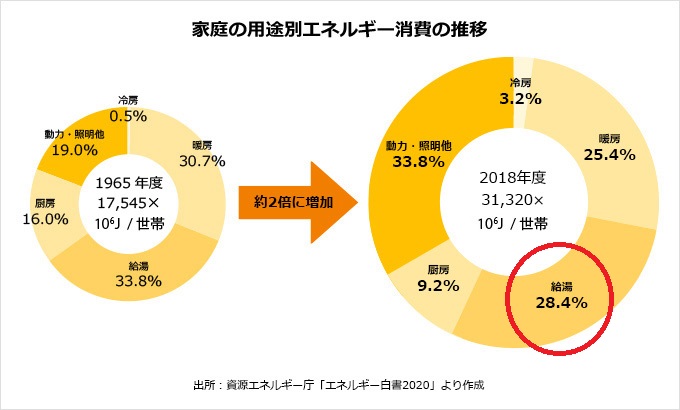 3割近くが給湯エネルギーとなっています(クリック可)