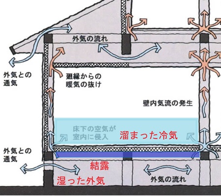 ちなみに基礎断熱でも外気を床下に取り込むタイプの換気システムも 同様の問題を抱えていると言えるでしょう。
