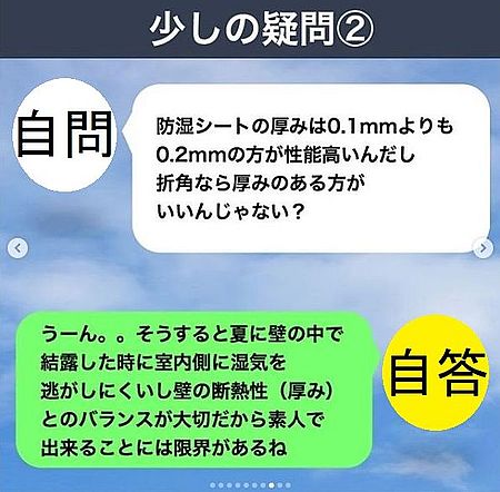 透湿を考えるのなら、厚みの差異では無く「透湿シート」の採用が必要。