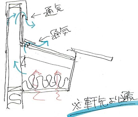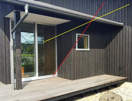 これ位の軒があれば 7月には掃き出し窓に日射は当たりません。