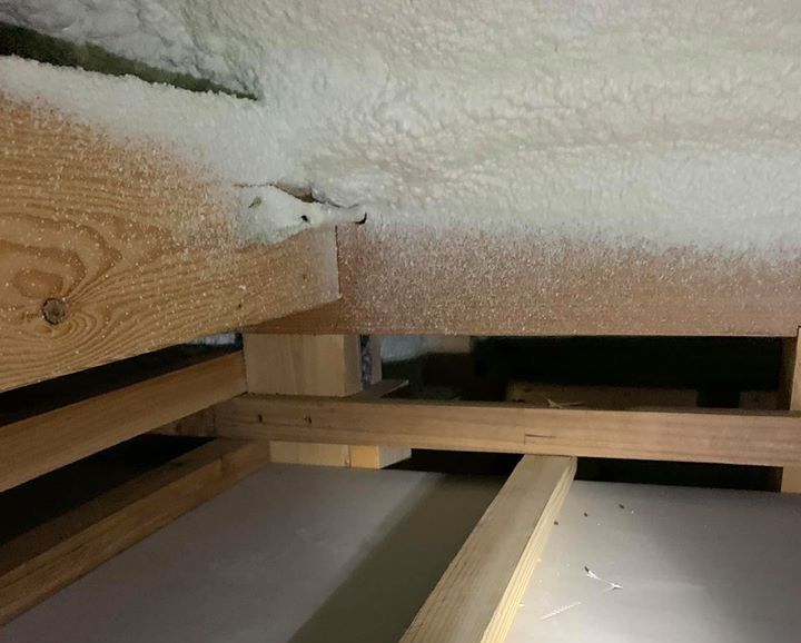 こちら屋根部分に発砲断熱材が吹き付けてあります。