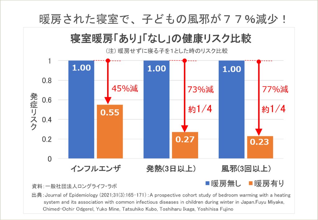 朝まで暖房をつけて寝た子どもの方が なんと77%も風邪をひきにくいとの事。