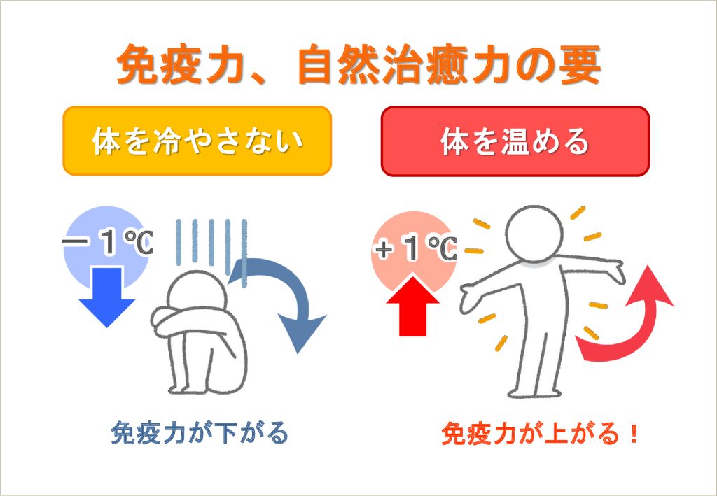 なんと 体温が1度下がってしまうと免疫力は約30%落ちるとか。