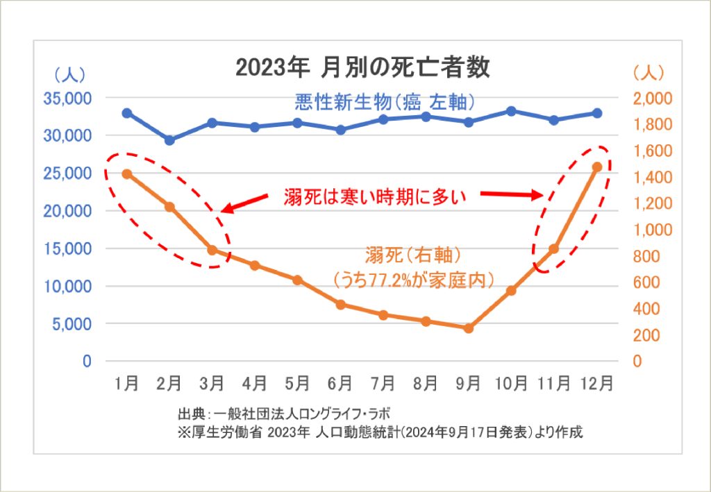 そして 統計でみると圧倒的に冬季の死者が多い訳で。