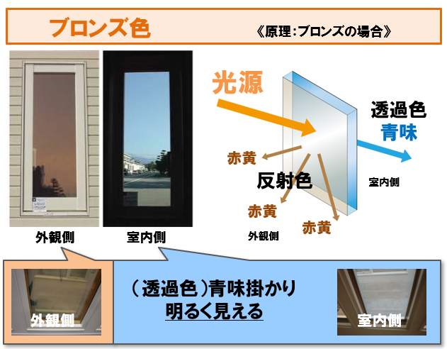 なぜブロンズガラスなのに青色に見えるかと言えば
