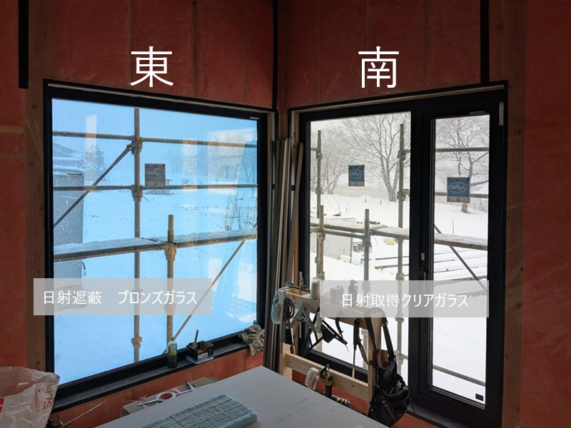 こちら「トリプルガラス」にて南側は日射取得用に透明無色のガラスで