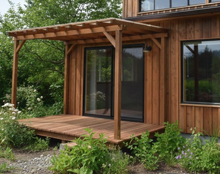 あえて屋根は光を通す素材として、夏季はスダレとかタープを屋根下に張るのも手。