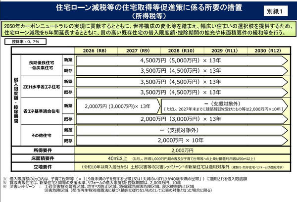 ・ 令和10年以降に入居する場合、土砂災害等の災害レッドゾーンの新築住宅は適用対象外(建替え・既存住宅・リフォームは適用対象)